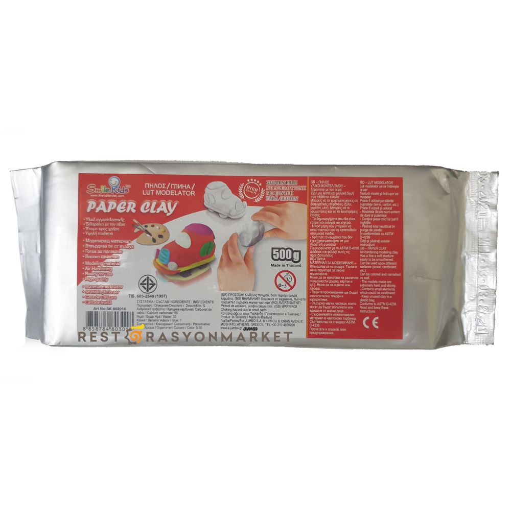 Smile kids Kağıt Hamuru - 500gr Beyaz çocuk gelişim malzemesi. Objeleriniz kuruduktan sonra boya yapabilirsiniz. Sağlığa zararlı madde içermez. 3 yaş altı çocuklar için uygun değildir.