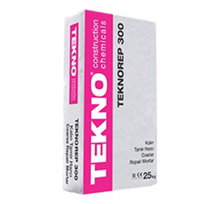 Teknorep 300 Çimento esaslı, tek bileşenli, elyaf takviyeli, polimer katkılı, kalın tamir harcı.